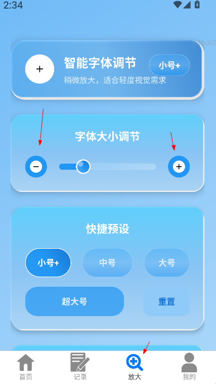 3、字体设置功能,通过“+”与“-”按钮灵活调整,保证显示效果符合个人需求。