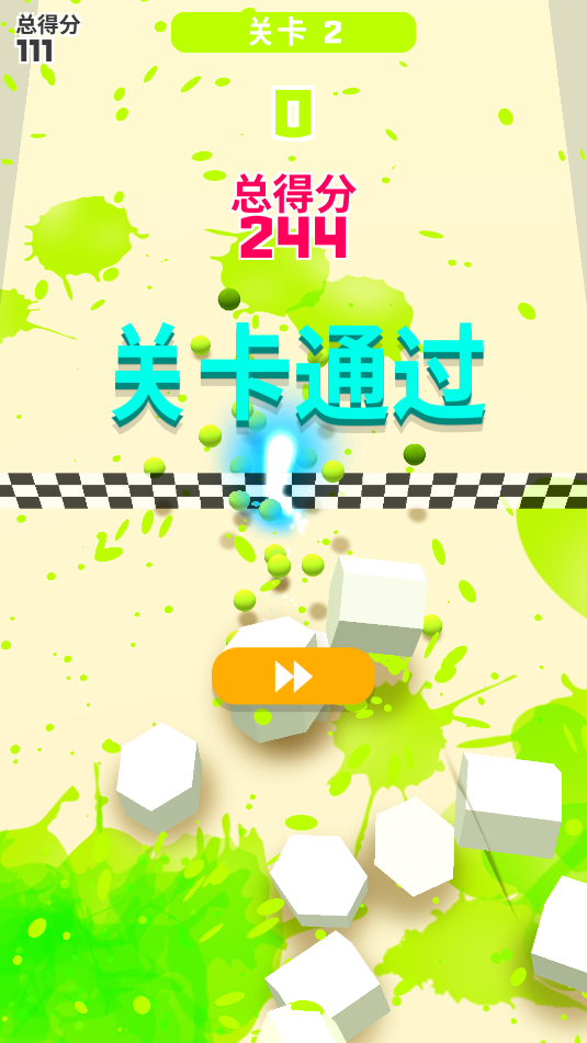 3、当进度到达这个黑白线时,即可通关,并计算得分。