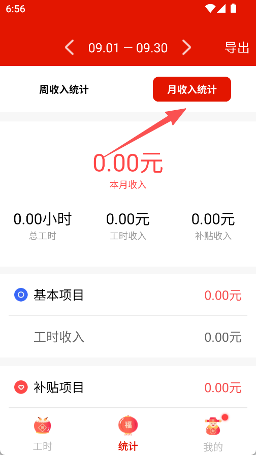 2、拥有统计功能,可切换查看周收入统计和月收入统计,清晰呈现总工时、工时收入、补贴收入以及基本项目、补贴项目等明细。