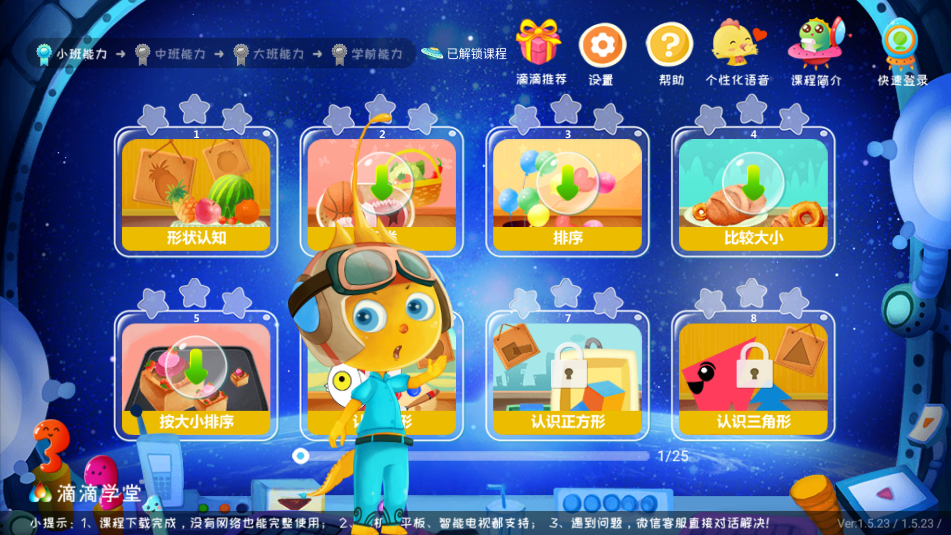 滴滴萌数学是一款专注于3-7岁儿童数学启蒙的教育软件,基于蒙台梭利教育法打造。内设200节交互式游戏课程,由浅入深。孩子在游戏中,能提升颜色、形状、空间等多方面能力,启蒙数学思维。软件融入纯正美式英语,让孩子边玩数学边学英语,培养英语语感,助力3-7岁孩子轻松开启数学与英语学习之旅。