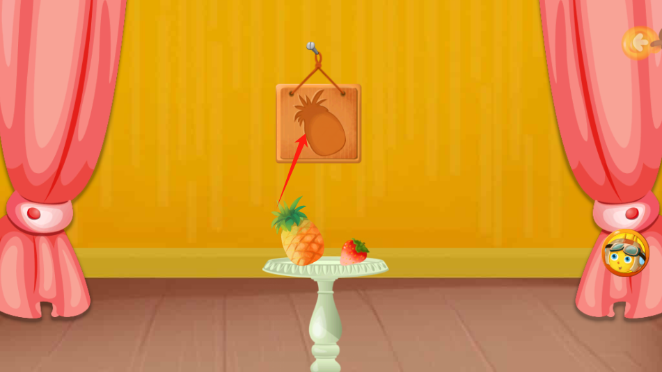 2、根据墙上的图案,点击选择桌面的水果,放置画像轮廓中。