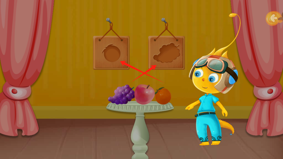 3、点击桌面的水果,就会告诉你这是什么水果,正确放置后就会进入下一步骤。
