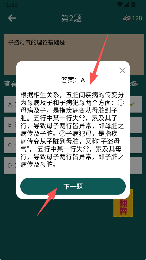 3、答题后查看含知识点的答案解析,再点 “下一题” 继续。