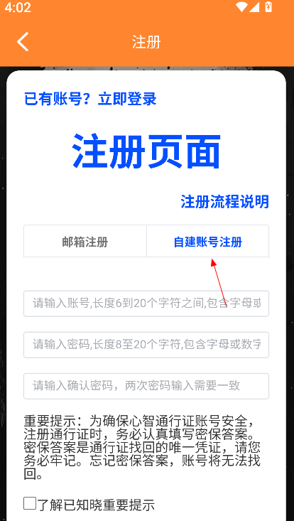3、也可以选择自建账号注册,自行设定账号名与密码,形成独立身份便于后续使用。