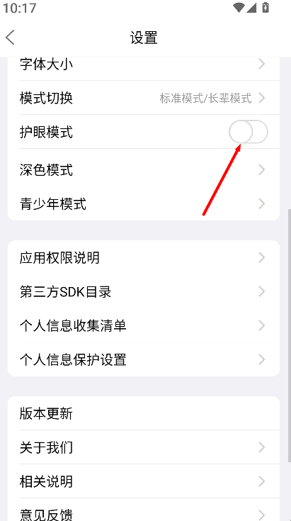 3、在设置页面中,找到护眼模式,将其开启,即可完成操作。