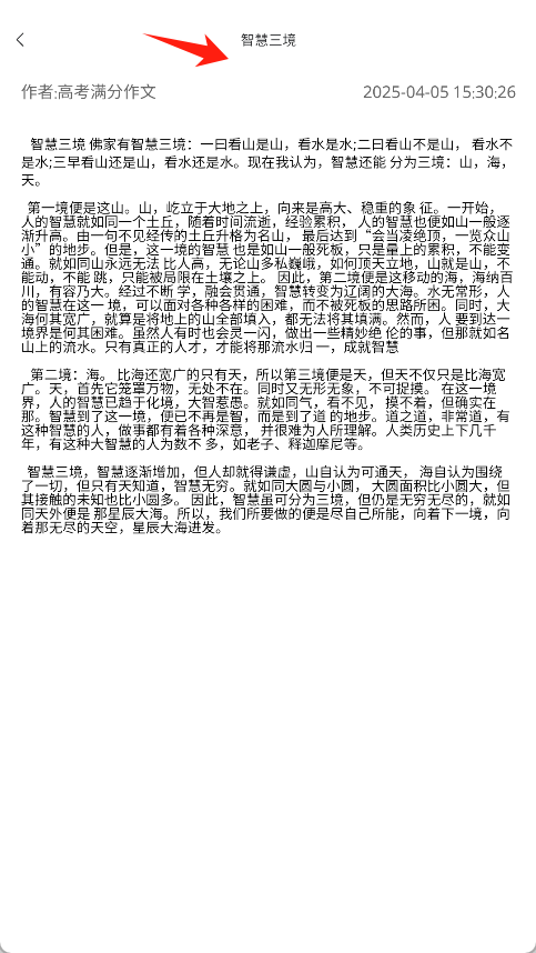 3、之后就可以阅读作文范文素材了,一键查阅范文。