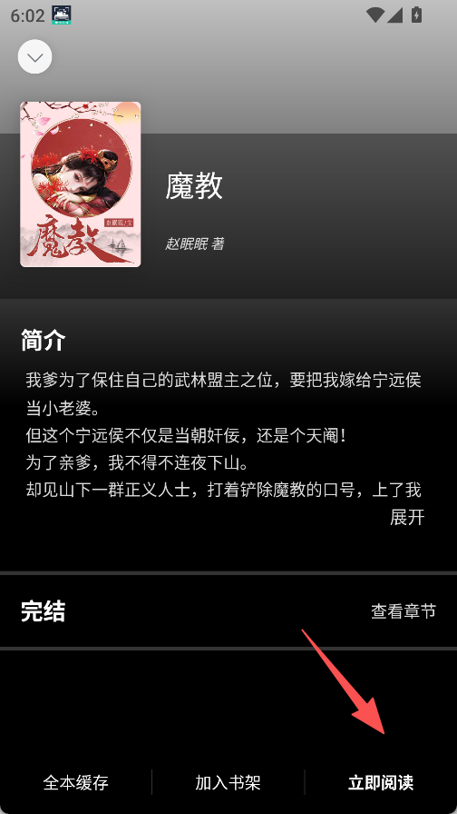 2、点击小说查看简介,选择“立即阅读”、进入阅读页。