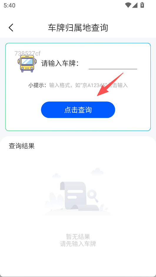 2、按提示格式输入车牌,点击“查询”可查看归属地结果。
