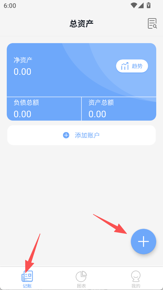 3、覆盖财务记录全流程,从“记账”添加收支,到“总资产”看资产状况。