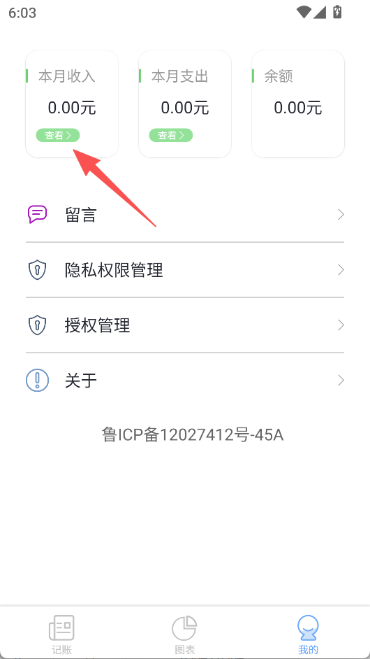 3、提供个人中心相关功能,“我的”页面可查看本月收入、支出、余额,还能进行隐私权限管理、授权管理。