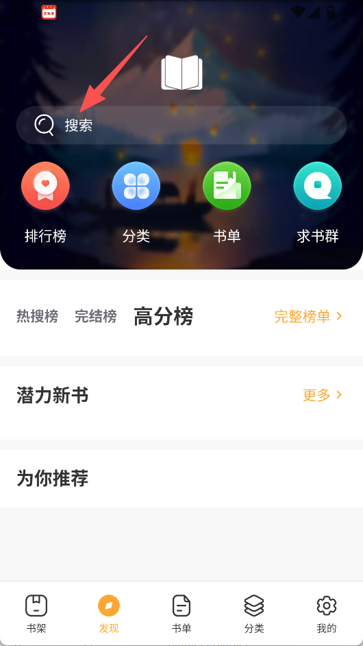 3、提供多种找书方式,除搜索外,还能通过排行榜、分类、书单、求书群等板块发现小说。