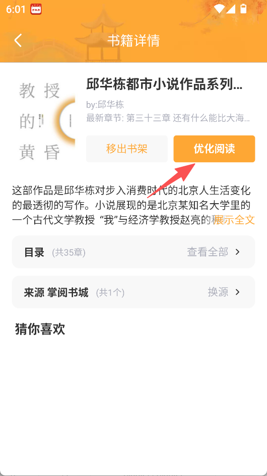 3、进入书籍详情页后,点击“优化阅读”按钮,即可进行阅读。