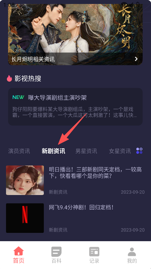 1、在首页可查看“影视热搜”“新剧资讯”等影视相关内容。