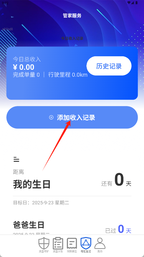 3、生活工具区提供收入记录添加、生日提醒设置等多项日常事务管理服务。