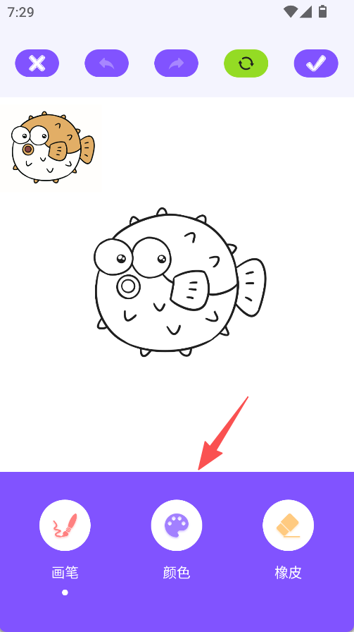 2、填色界面配备画笔、颜色、橡皮等工具,操作便捷,可灵活调整填色效果。