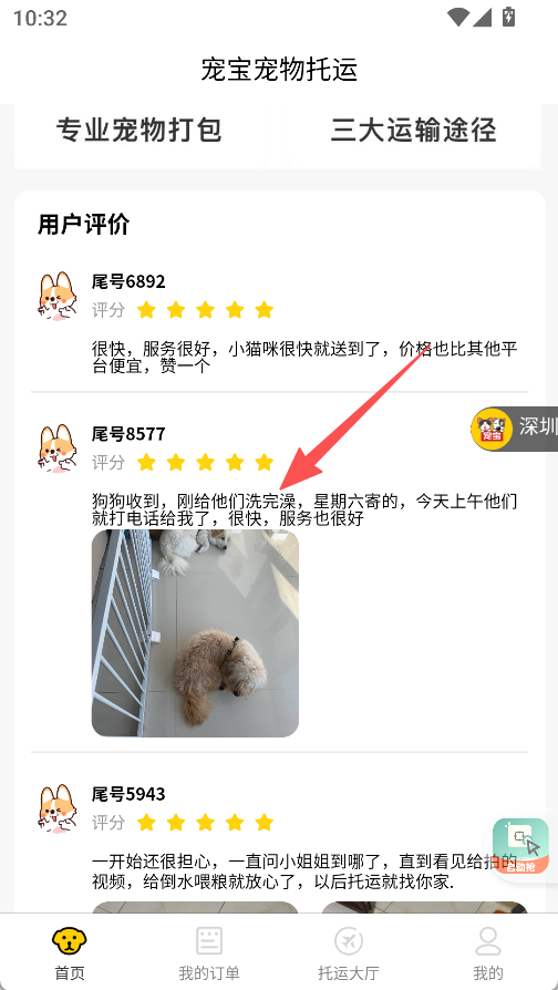 2、可查看用户评价,了解宠物托运的时效、服务等反馈情况。