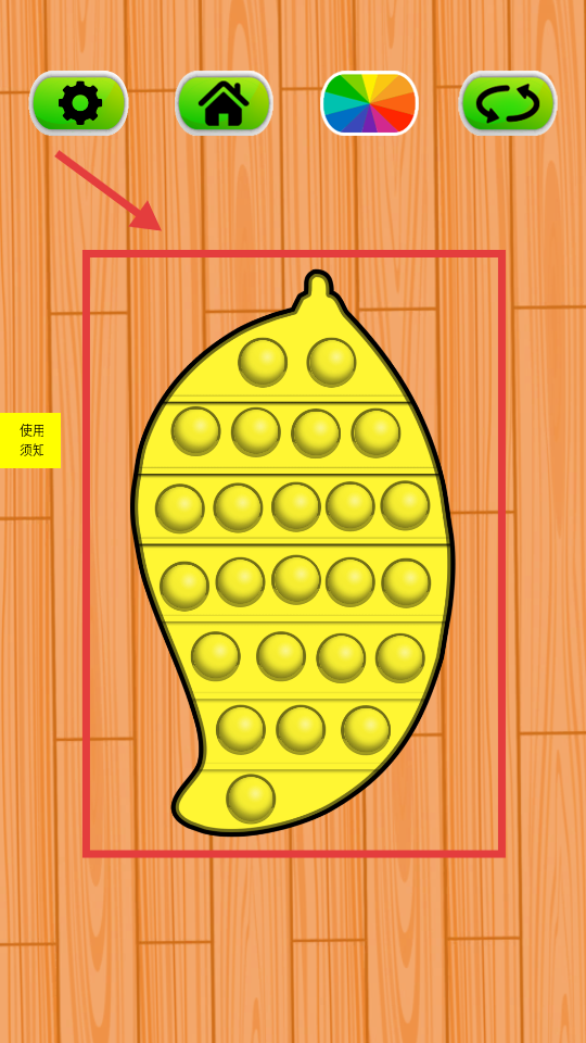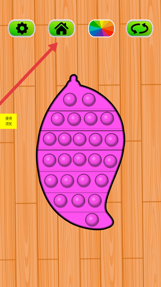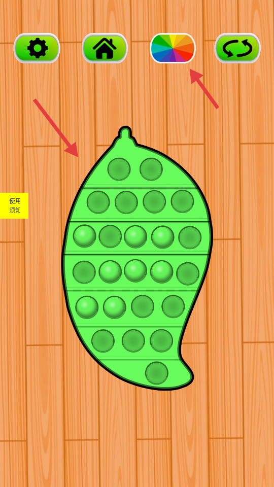 3、点击上方彩色圆盘按钮,能为芒果造型泡泡玩具更换颜色,比如换成绿色、粉色等不同色彩。