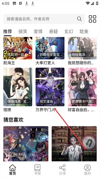 1、在首页通过搜索或“为你推荐”找到漫画,点击进入详情页。