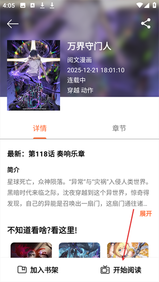 2、于详情页浏览简介与章节信息,点击“开始阅读”按钮。