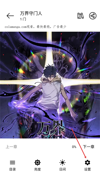 3、在漫画阅读页面,点击底部的“设置”图标,展开阅读设置菜单。