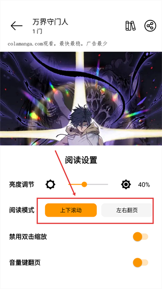 3、进入阅读界面后,上下滑动屏幕即可翻页观看漫画内容。