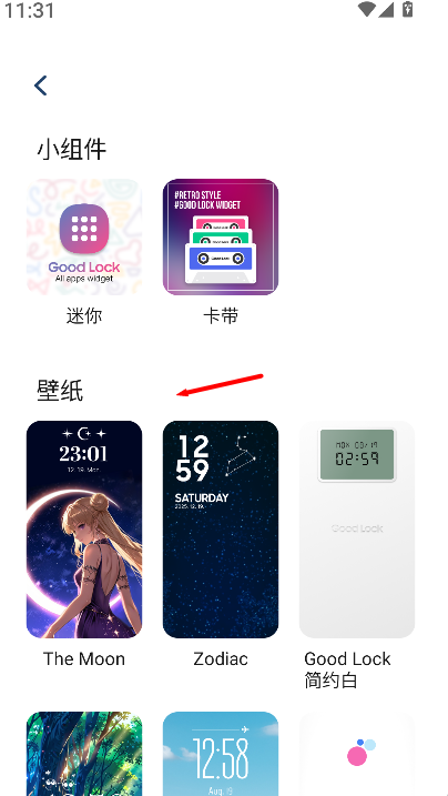 3、在组件界面中浏览并选择想要使用的壁纸,可根据喜好进行筛选与预览。