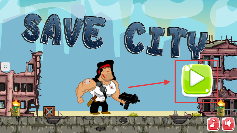 1、点击【绿色】-【播放】按钮,开启【SAVE-CITY】守护城市的横版射击冒险。