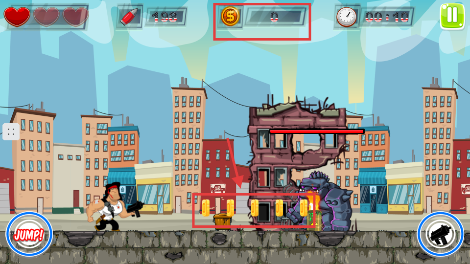3、战斗中收集【金币】,积累后增强战力,同时关注场景道具提升战斗能力。