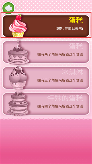 1、要解锁不同食谱需收集对应角色数量,比如【蛋糕】需两个角色,【冰淇淋】需三个,逐步解锁来扩展可制作的甜品种类。