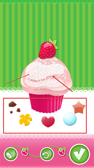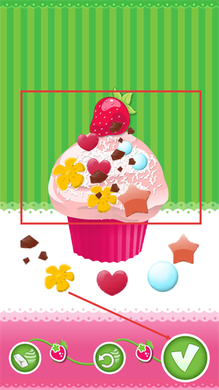 4、完成蛋糕装饰后点击底部确认按钮,提交你的装饰成果,顺利完成该甜品的制作流程并解锁新的内容。