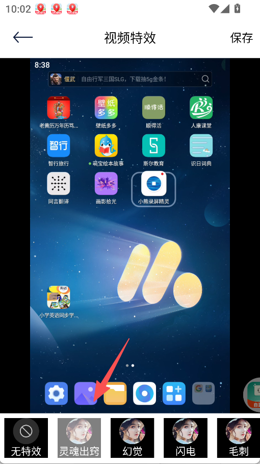 3、添加“灵魂出窍”等特效,完成后保存视频。
