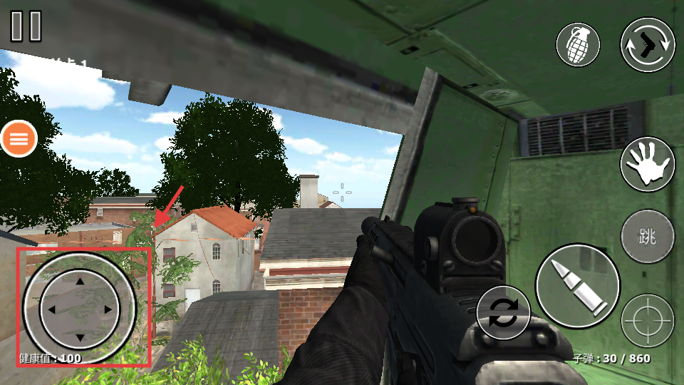 3、借助左侧方向轮盘操控角色移动,调整自身位置与视角。