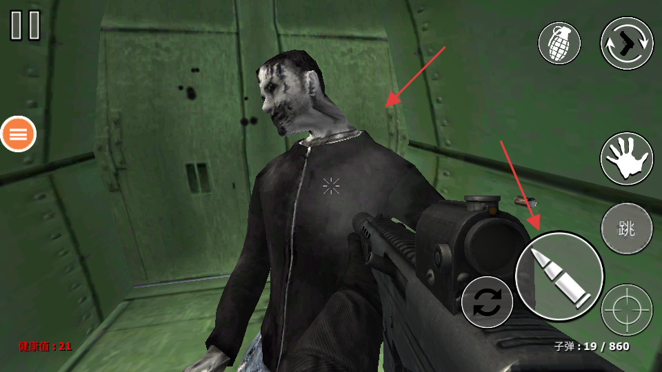 4、遭遇敌方目标(如僵尸)时,点击右侧子弹图标射击敌人。