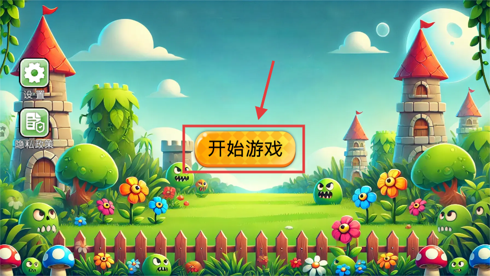 1、点击【开始游戏】,进入《植物变异僵尸大作战》,准备组建植物军团抗僵尸。