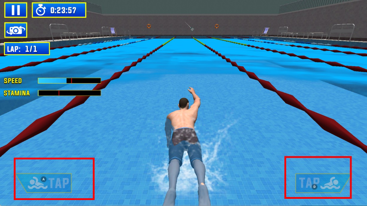 1、点击“TAP-TO-PLAY”,进入游泳比赛场景。