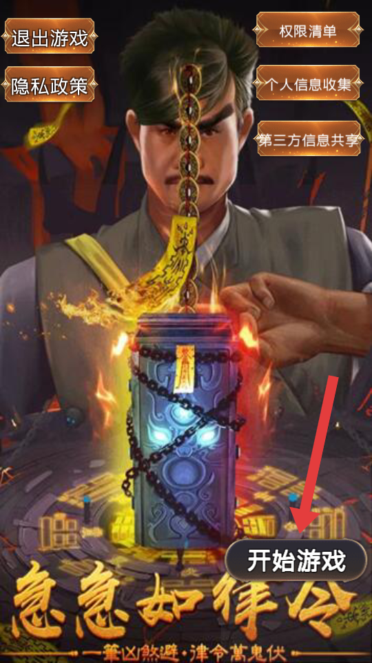 1、在游戏启动界面,点击【开始游戏】按钮,进入刺激的游戏关卡体验抓鬼之旅。