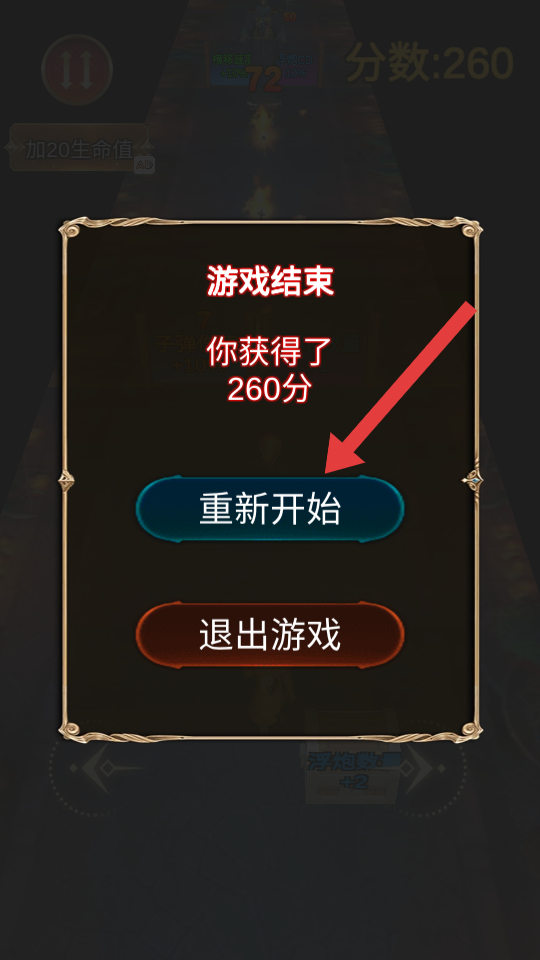 4、游戏结束后,若想再次挑战,点击【重新开始】按钮,即可重新开启抓鬼冒险。