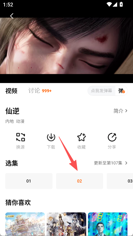 3、详情页具备换源、下载、收藏等功能,也能选择集数观看。