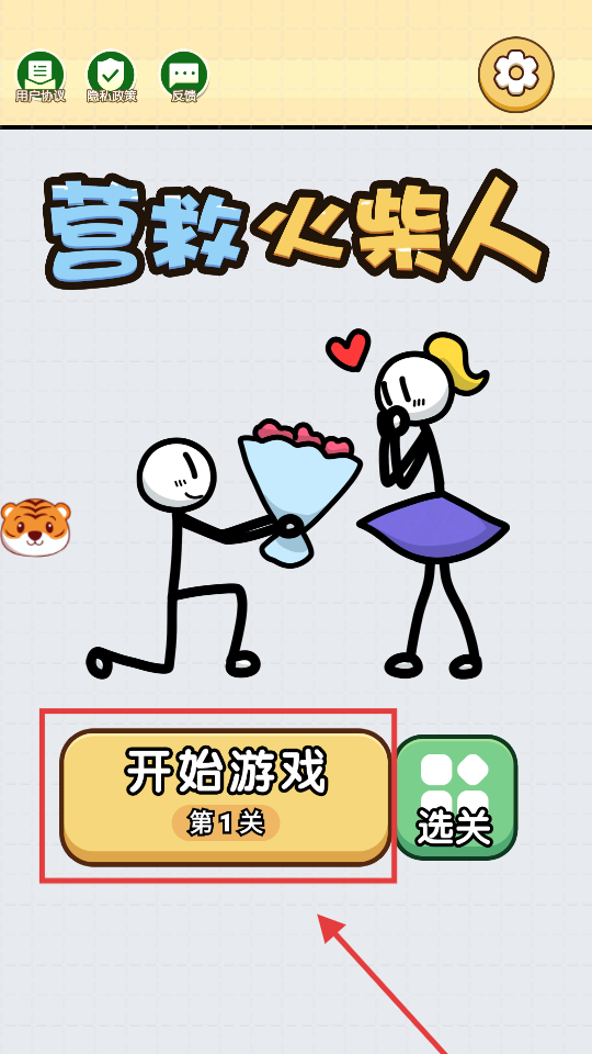 1、点击【开始游戏-第1关】按钮,进入第一关,开启营救火柴人的解谜闯关挑战。