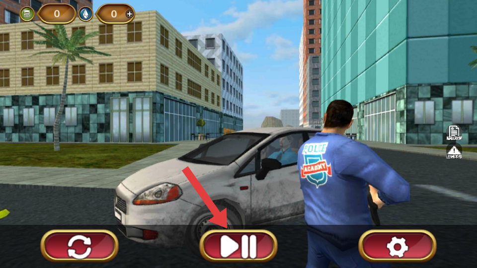 1、在游戏界面中,点击下方的【播放按钮】,正式开始3D警车驾驶模拟体验。