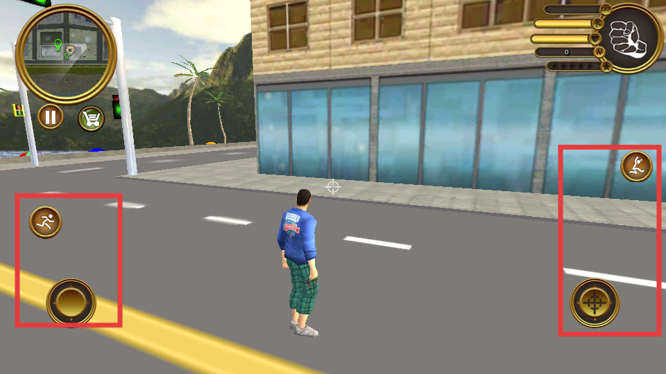 2、进入游戏场景后,利用左侧的【虚拟摇杆】控制角色移动,右侧【奔跑按钮】可让角色加速移动,快速探索场景。
