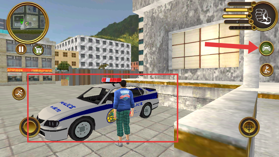 3、当发现【警车】后,点击右侧的【上车按钮】,进入警车驾驶状态。