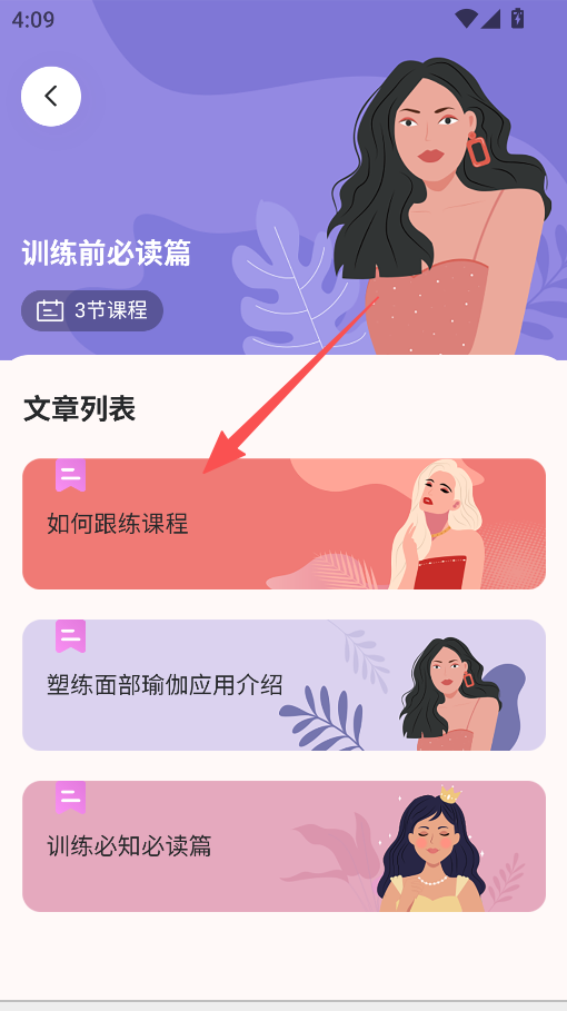 1、具备文章查看功能,可在“训练前必读篇”中查看“如何跟练课程”等学习内容。