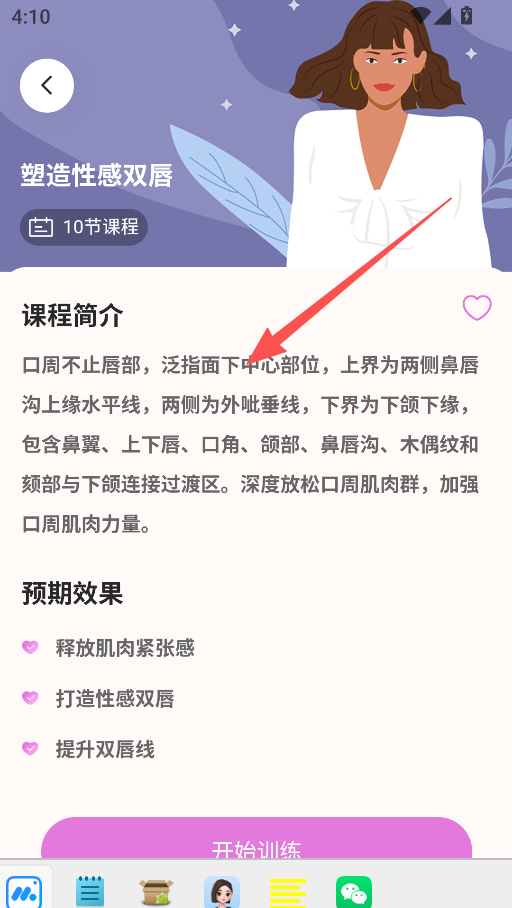 3、每类课程都配备详细简介,清晰说明锻炼的面部区域、作用,辅助理解课程价值。
