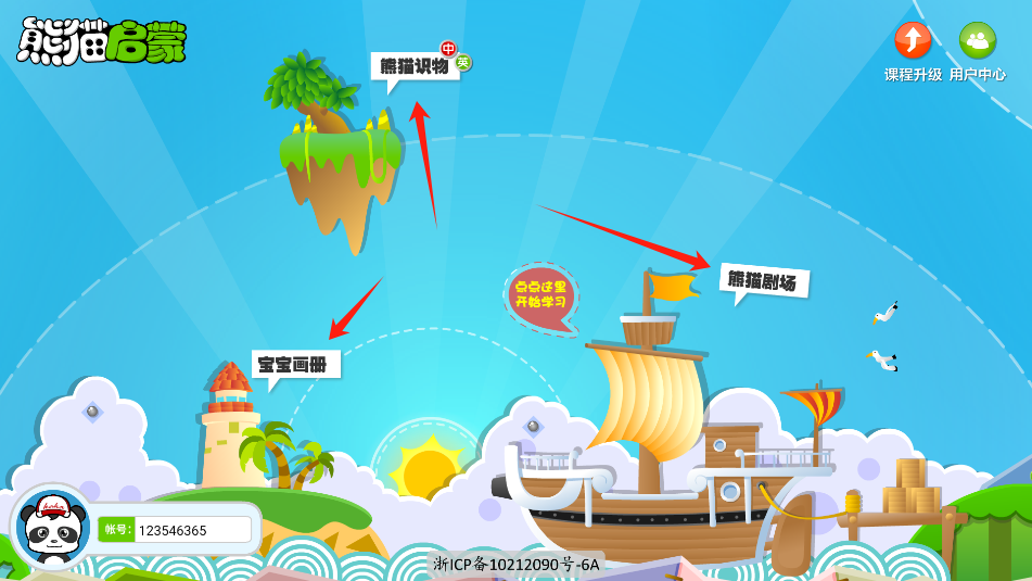 2、熊猫识物:通过卡片呈现各类事物,搭配语音与拼音,辅助认知与记忆,设有检测环节巩固效果。