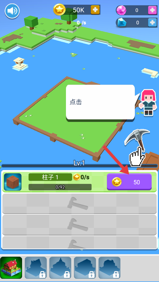 2、根据提示点击紫色按钮,花费50金币,开始建造。