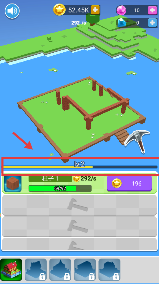 3、建造过程中,关注等级进度条,当进度条满后,游戏等级会提升。