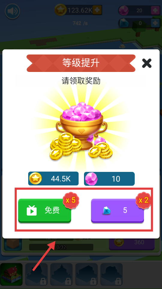 4、等级提升后,可选择【免费】看视频或直接获得钻石。