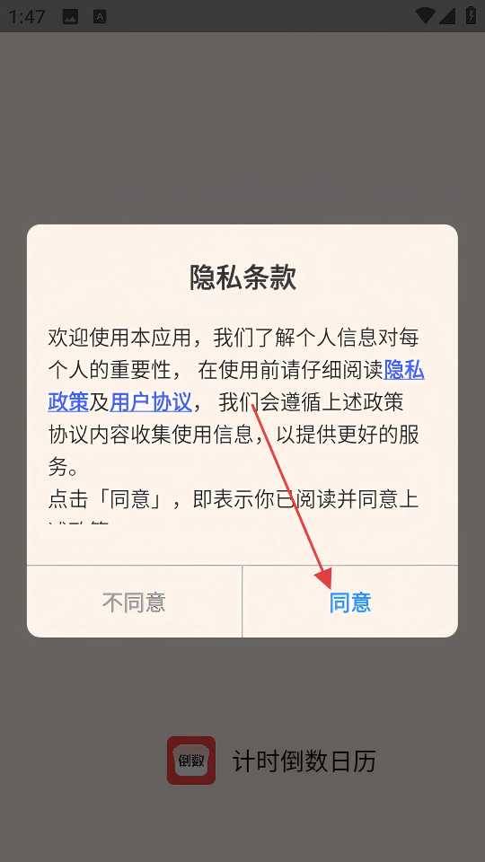 1、点击【隐私条款】弹窗的“同意”,进入应用。