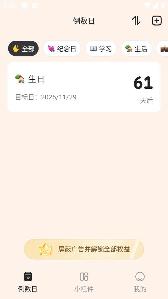 4、桌面小组件丰富:内置大量精美好看的桌面小组件,支持自定义组件风格与显示效果,添加至桌面可快速查看倒数日信息。